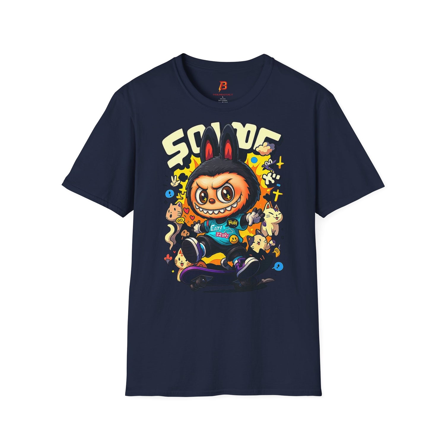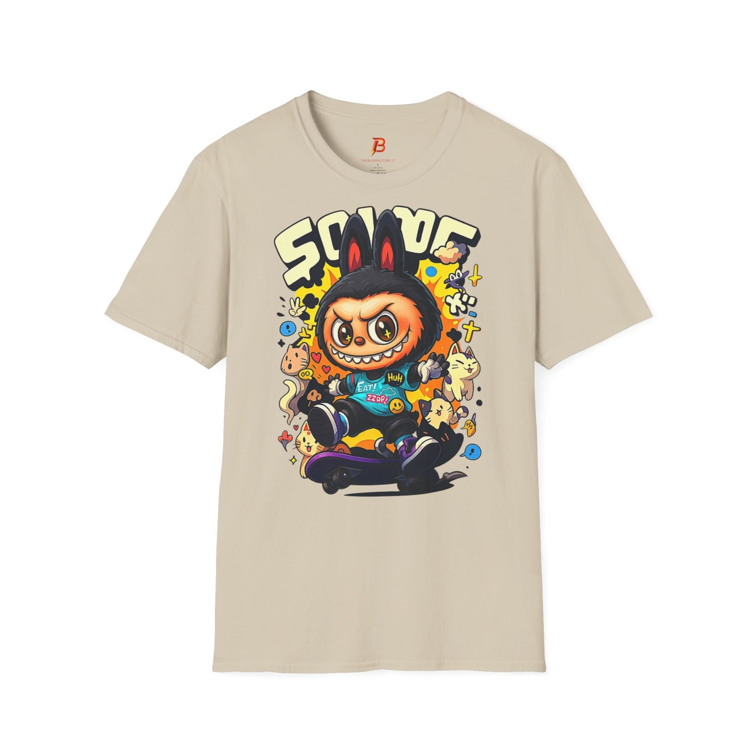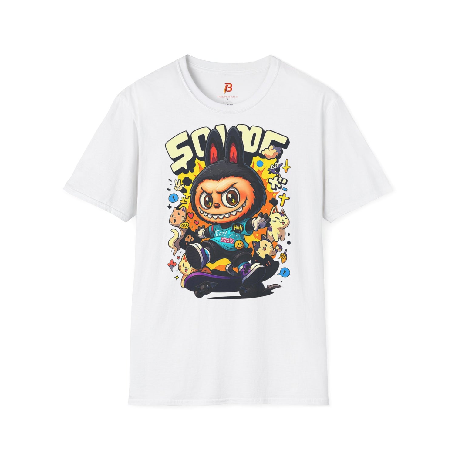 T-Shirt Unisex Labubu Softstyle – Design Kawaii Streetwear con Skateboard.