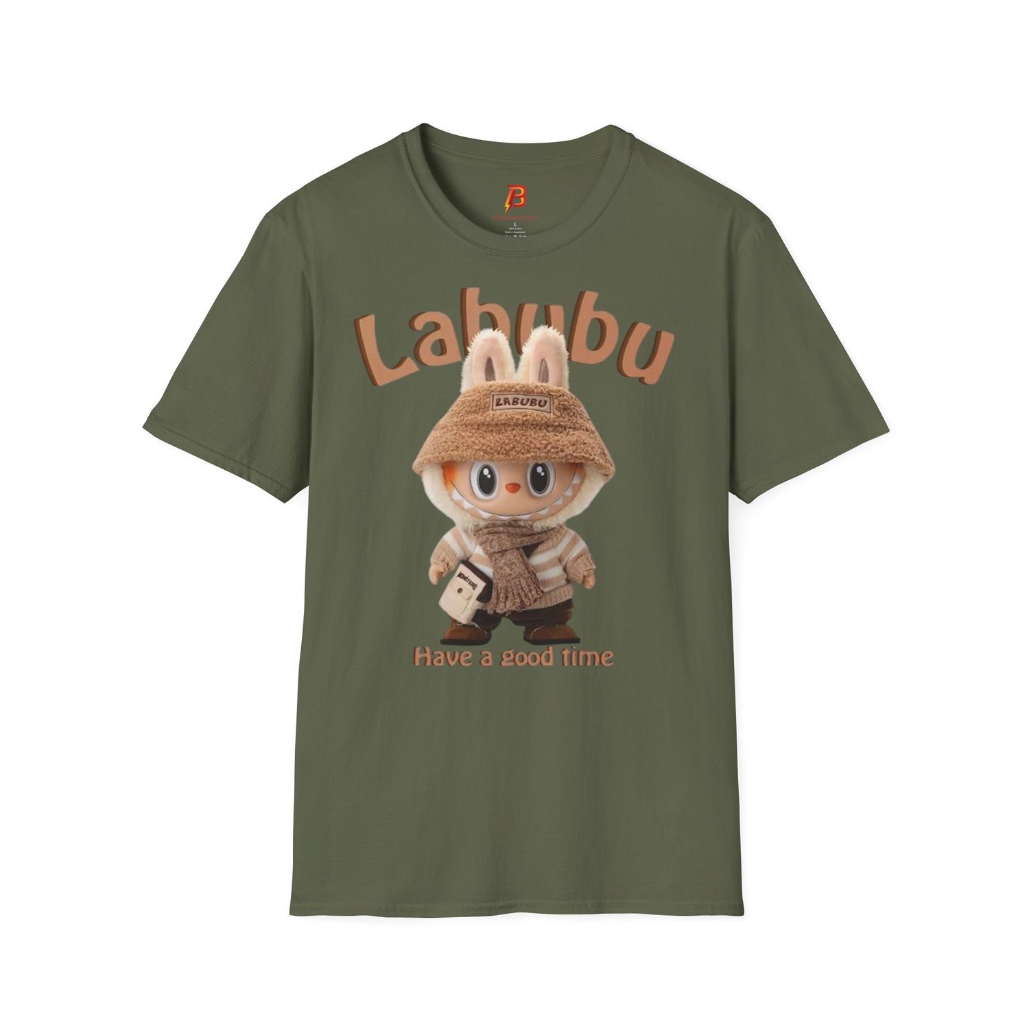 T-Shirt Unisex Labubu Softstyle – Design Kawaii Casual con Cappello a secchiello “Have a Good Time”.